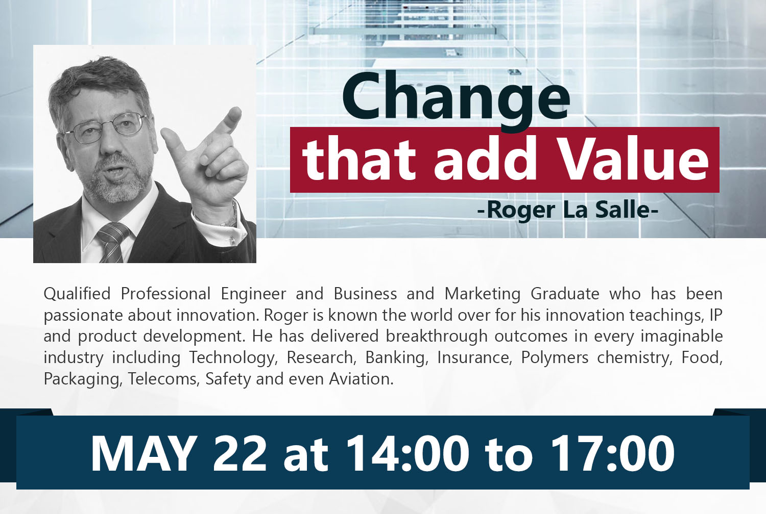 Invitado: Roger La Salle, Ingeniero y hombre de negocios apasionado por la innovación; es conocido alrededor del mundo por enseñar sobre propiedad intelectual, desarrollo de productos e innovación al punto de considerarlo el gurú de la innovación en el Asia.