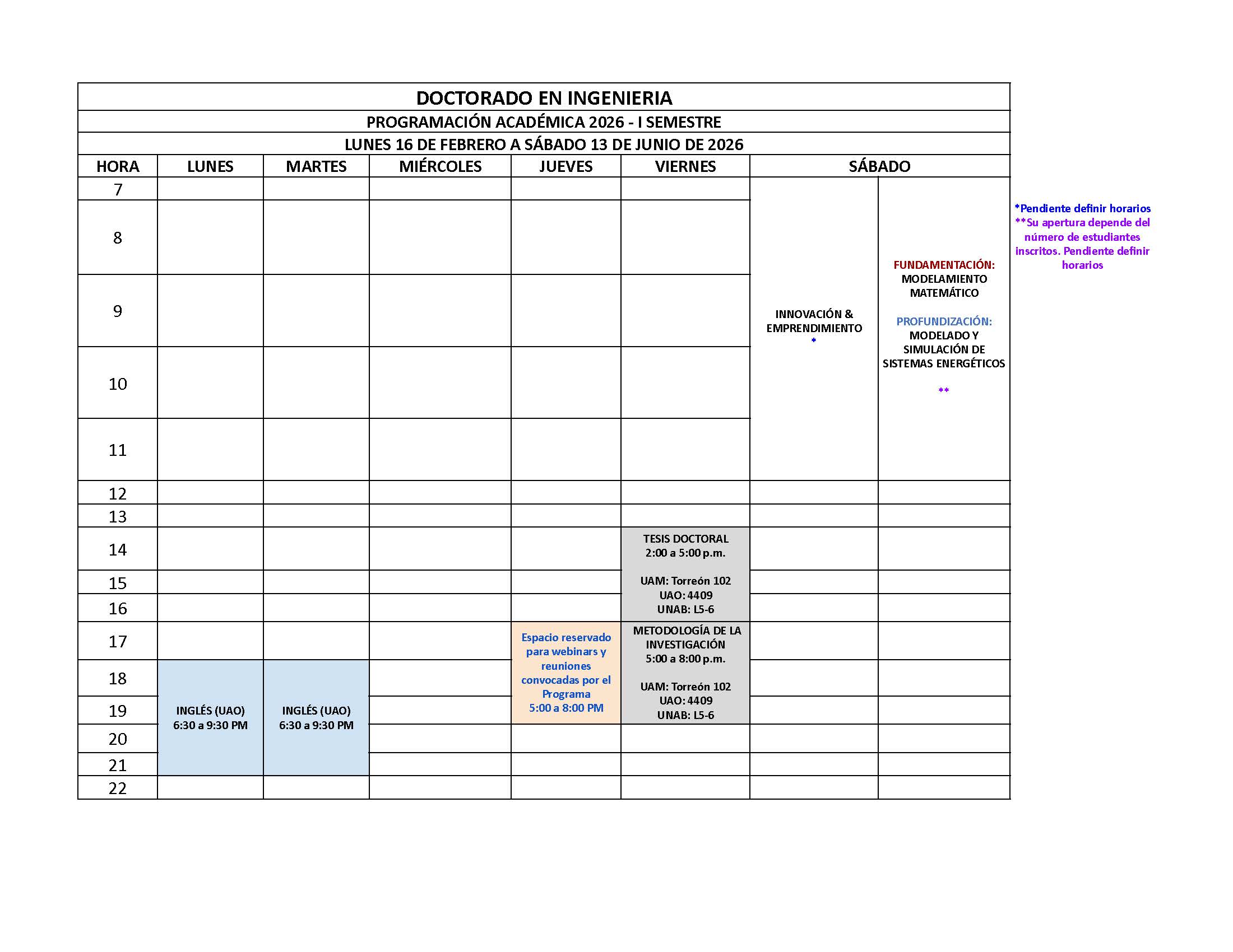 PROGRAMACIÓN ACADÉMICA 2026 - I SEMESTRE